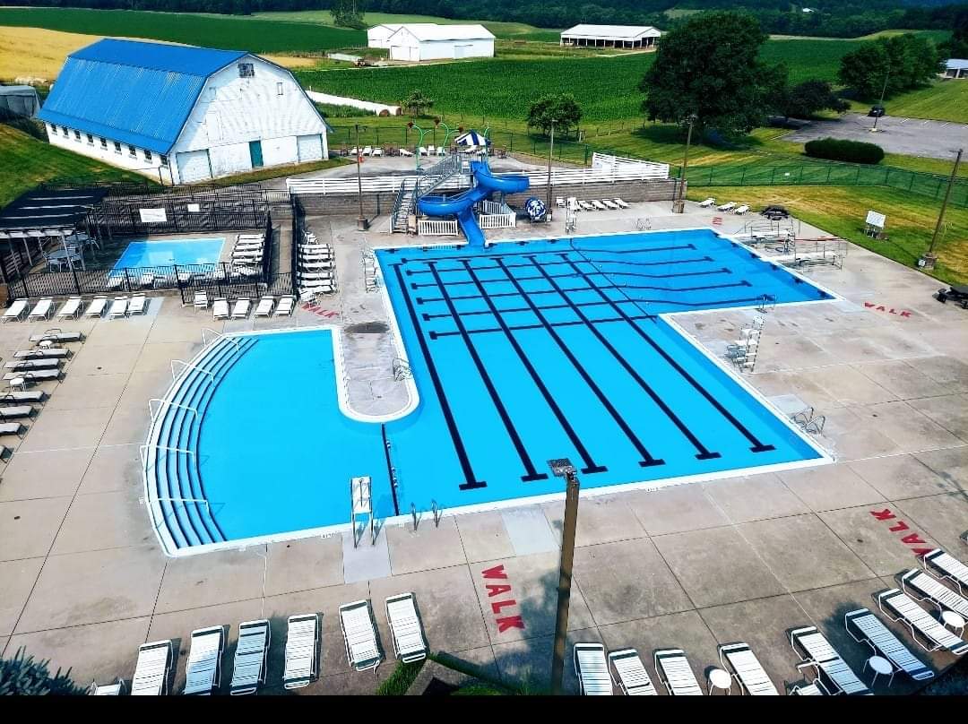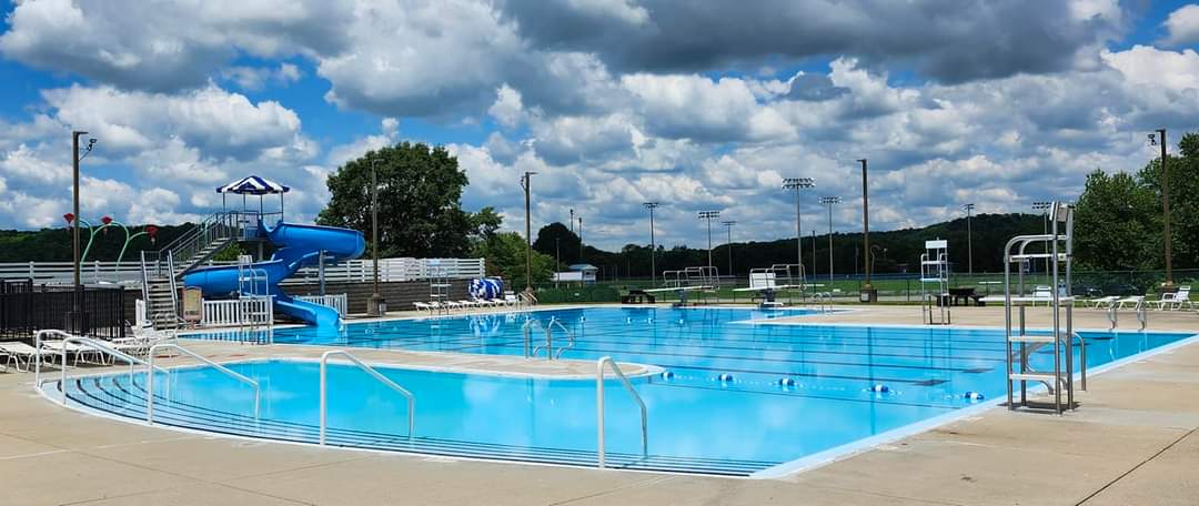 THE POOL IS OPEN THROUGH LABOR DAY. Our Community Pool is a clean and spacious seasonal recreational center. The facility features: shallow areas, swimming lanes, a deep end with two diving boards, water slide, kiddie pool, patio seating with lounge chairs, concessions, picnic table seating, green space, restrooms and showers. Swim lessons and adult water aerobics are held on selected dates and the pool can be rented for private parties.